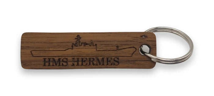 Stunning Keyring handmade in Teak removed from HMS Hermes during the dismantling work being carried out in India. HMS Hermes was in service with the Royal Navy from 1959 to 1984. Famously serving as the flagship during the Falklands conflict in 1982.